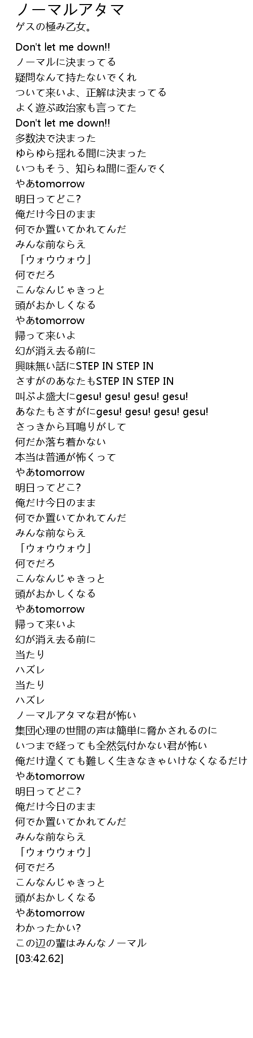ノーマルアタマ  Lyrics