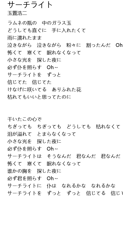 | サーチライトを ずっと ずっと 信じてる 信じてる |