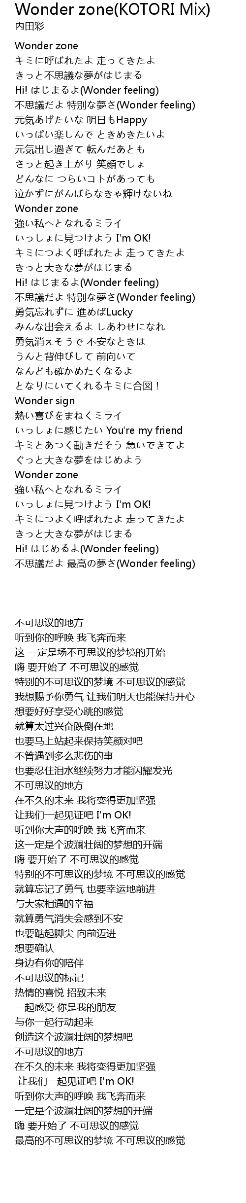 | [01:10.54] | Wonder zone |