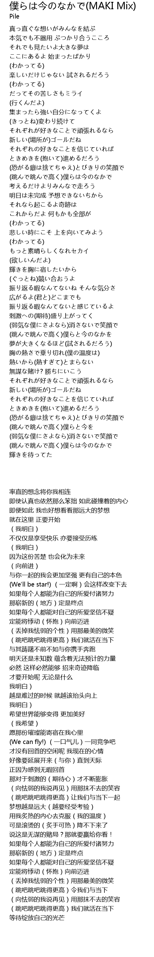 | [01:26.35] | (跳んで跳んで高く)僕らは今のなかで |