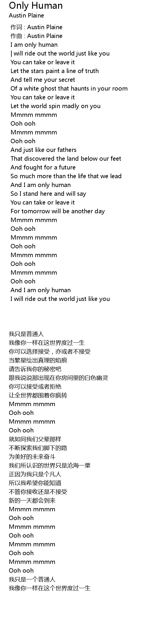 | [00:00.000] | 作词 : Austin Plaine |