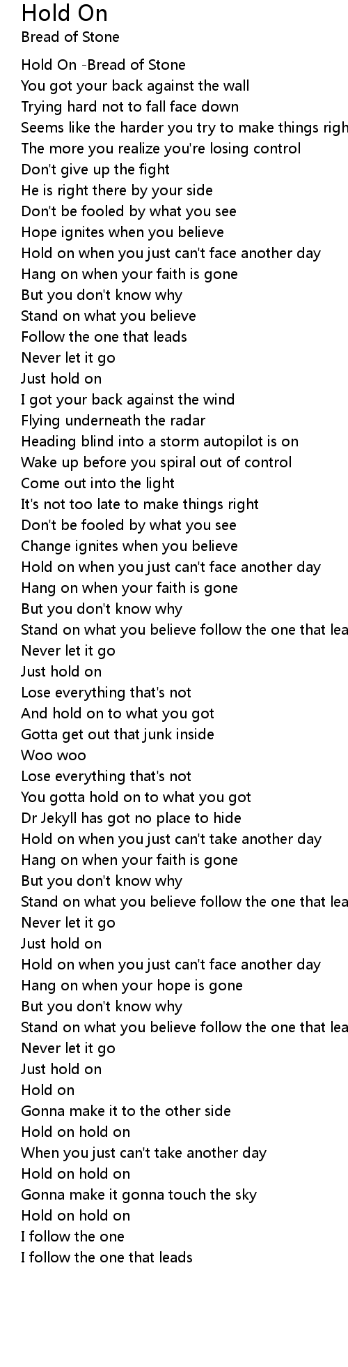 Hold On -Bread of Stone |