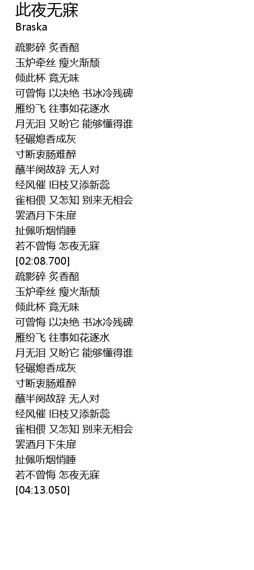 | [03:59.650] | 扯佩听烟悄睡 |