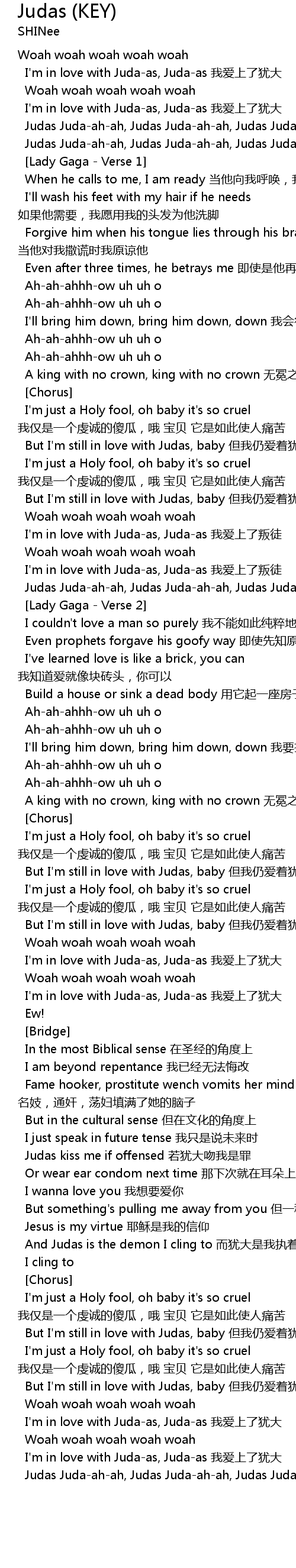 | But I' m still in love with Judas, baby dàn wǒ réng ài zhe yóu dà, bǎo bèi | |