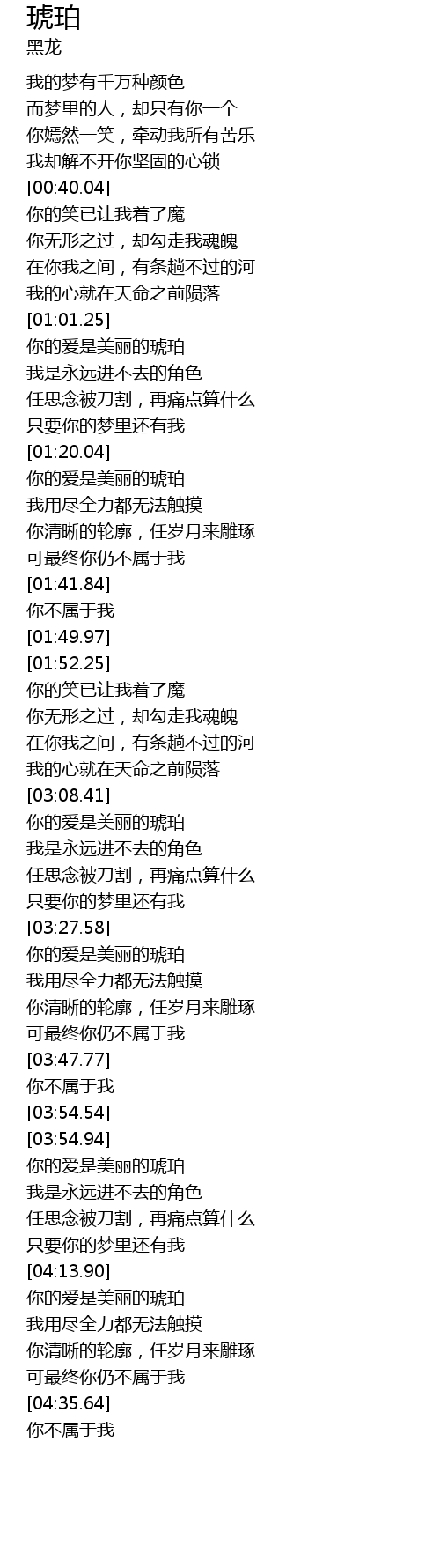 | [04:14.24] | 你的爱是美丽的琥珀 |