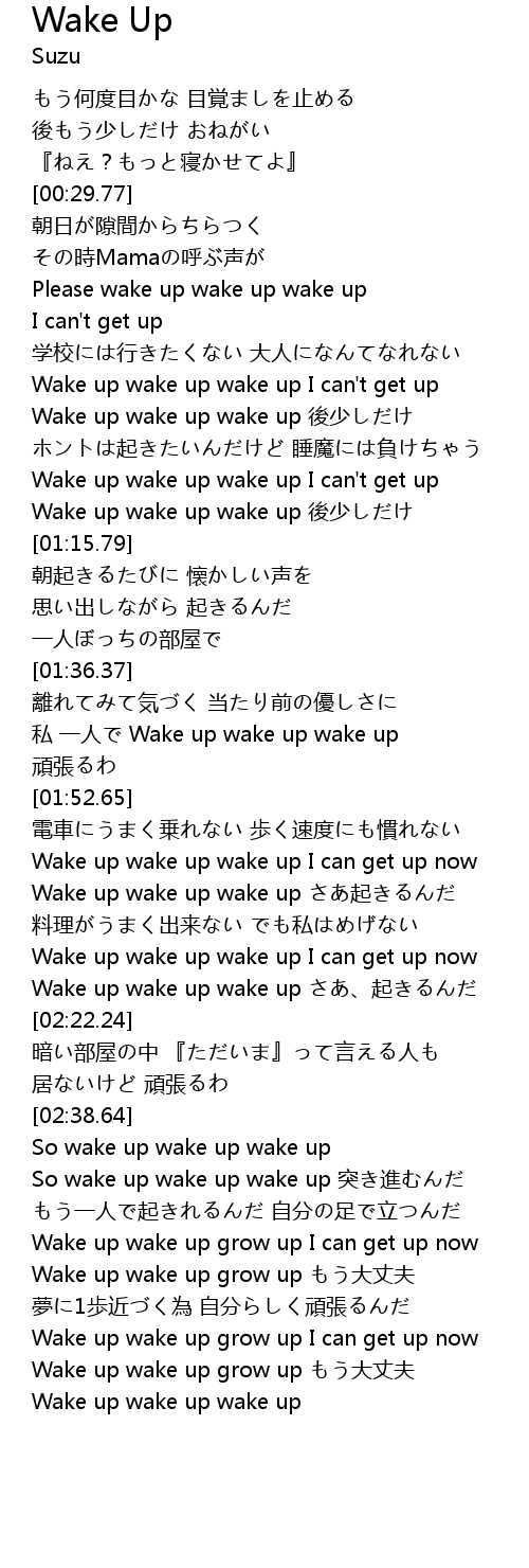 | [01:11.36] | Wake up wake up wake up 後少しだけ |