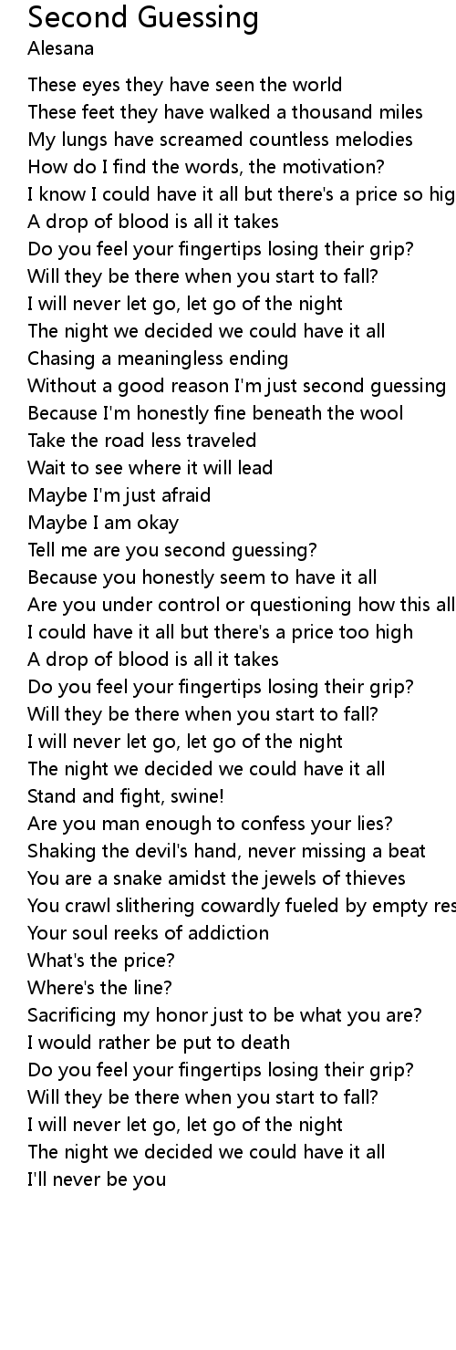 Tell me are you second guessing? |