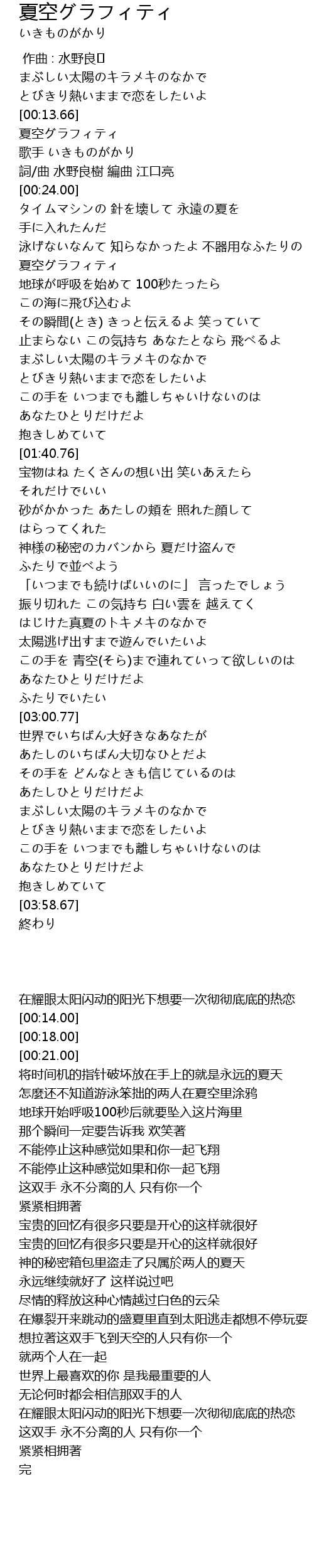 | [00:14.00] | 夏空グラフィティ |
