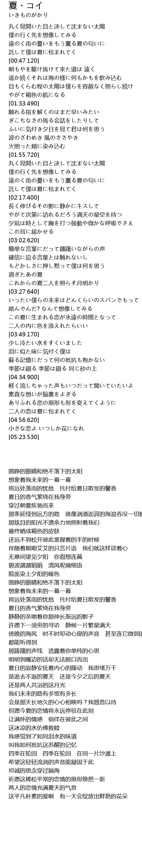 | [04:51.880] | 二人の恋は夏に包まれてく |