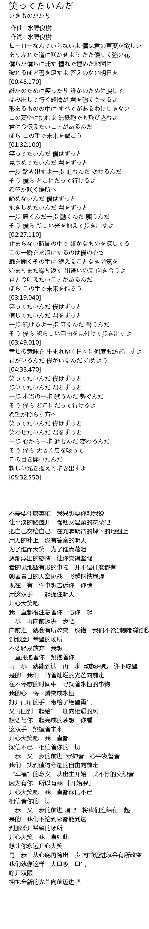 | [01:35.050] | 笑ってたいんだ 僕はずっと |