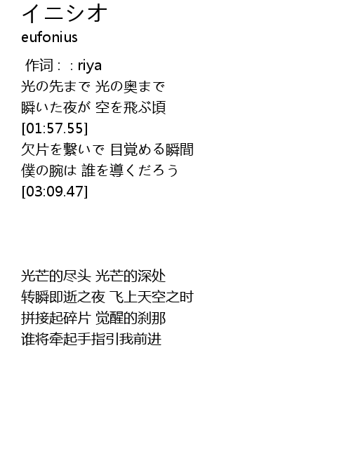 | [01:45.57] | 光の先まで 光の奥まで |