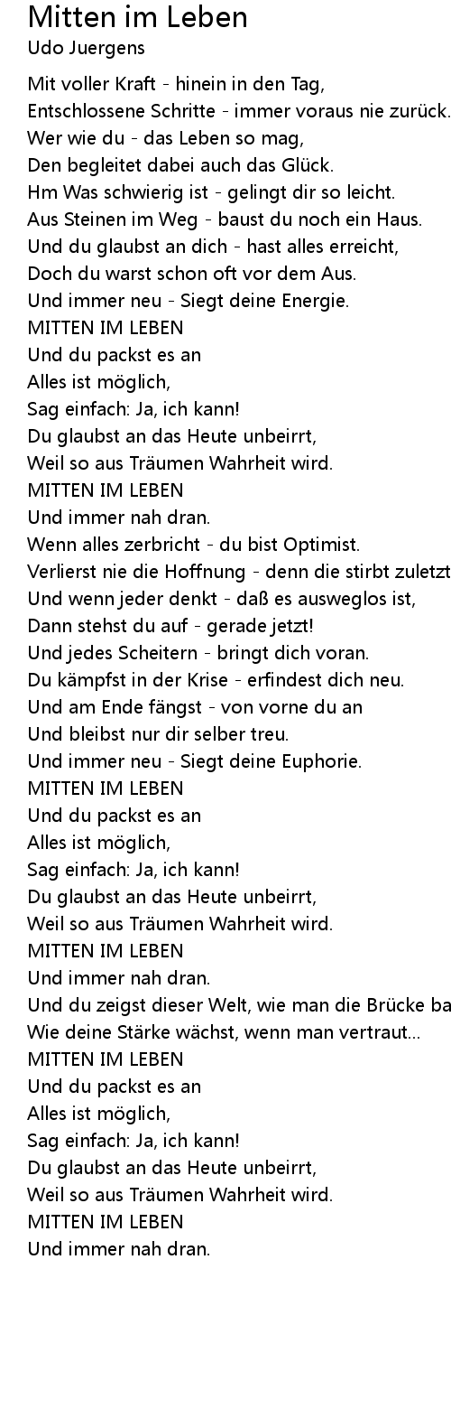 | Song | Mitten im Leben |