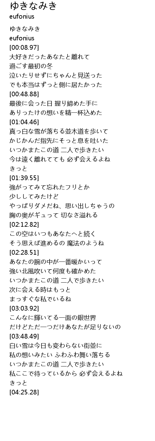 | [03:57.53] | 私の想いみたい ふわふわ舞い落ちる |