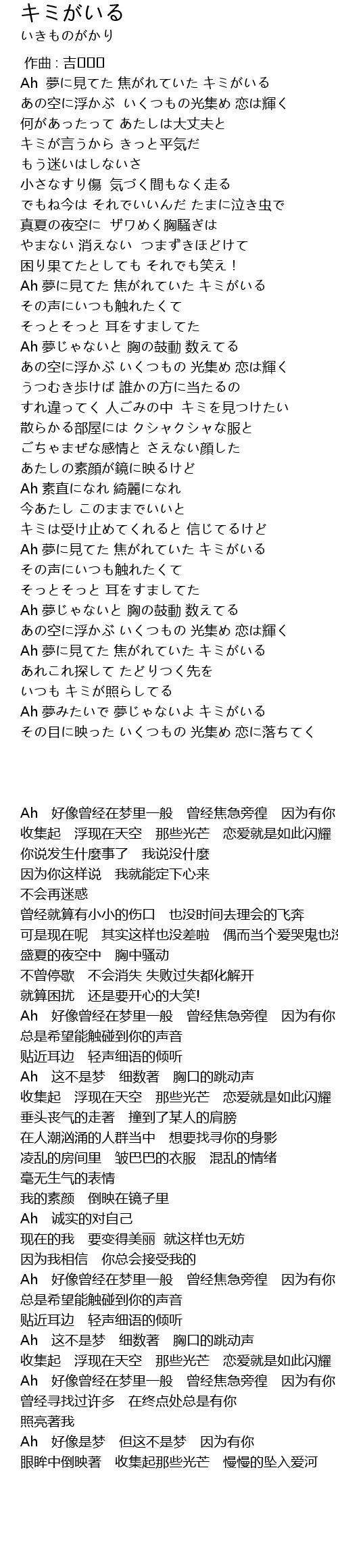 | [01:43.260] | Ah 夢に見てた 焦がれていた キミがいる |