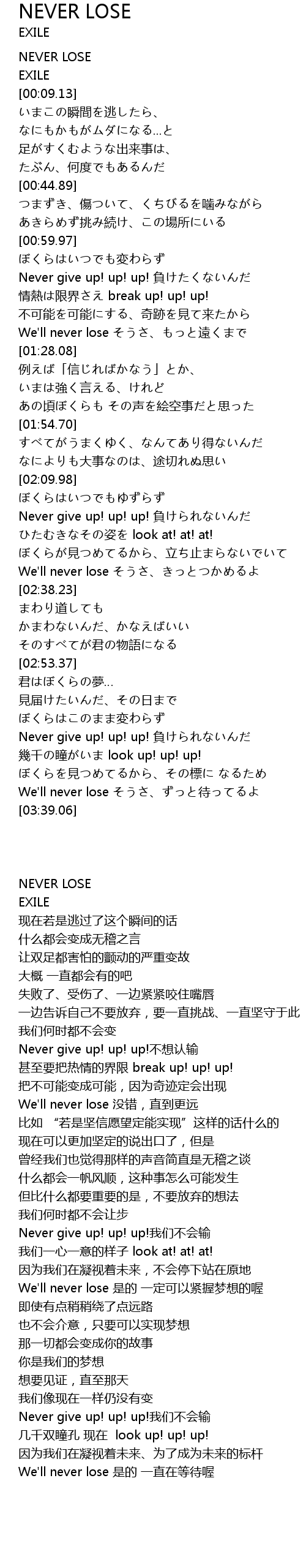 | [03:15.48] | Never give up! up! up! fu |