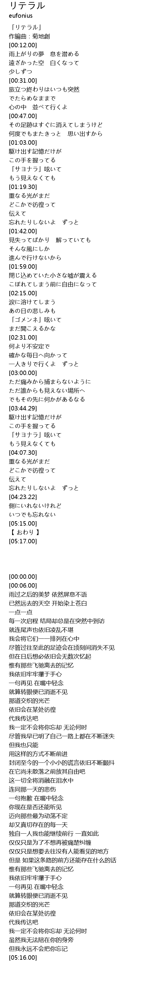 | [00:00.00] | 「リテラル」 |
