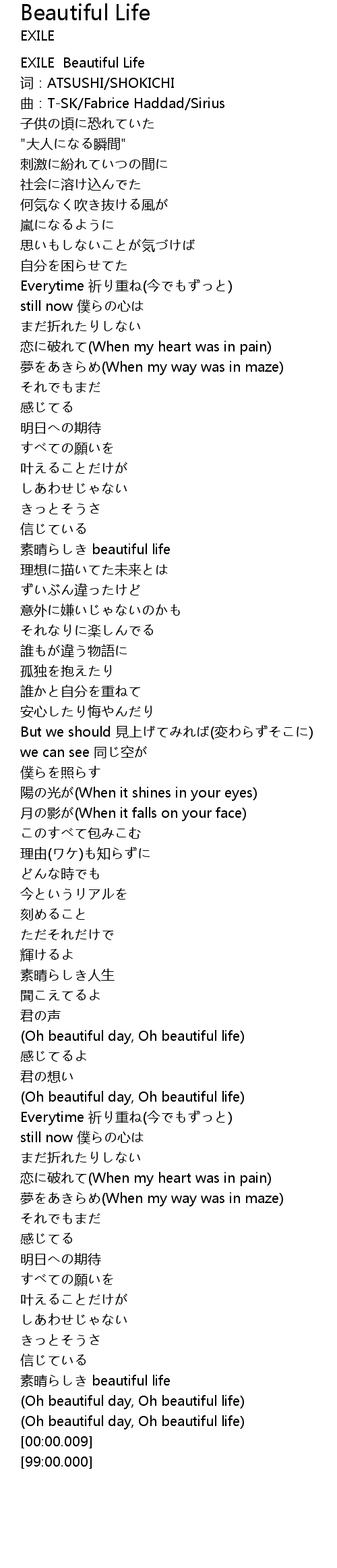 | [00:10.88] | EXILE Beautiful Life |