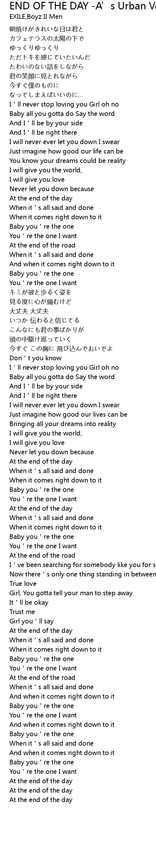 | Song | END OF THE DAY -A’s Urban Version- |