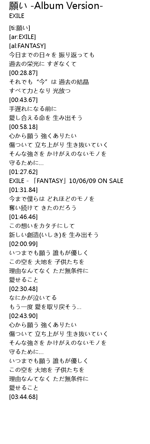 | [01:28.80] | EXILE FANTASY 10 06 09 ON SALE |
