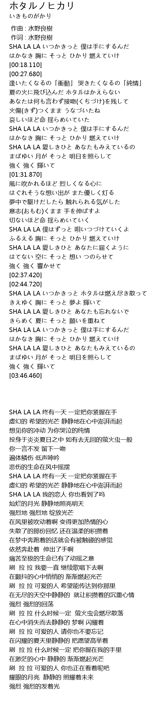 | [02:46.720] | SHA LA LA いつかきっと ホタルは燃え尽き散って |