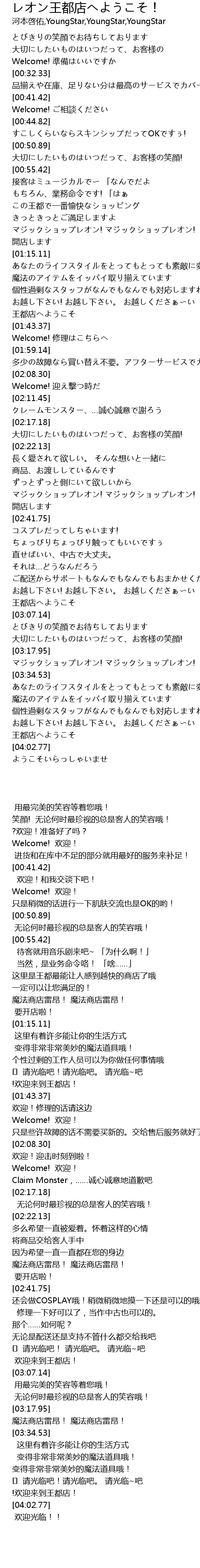 | [03:58.08] | 王都店へようこそ |