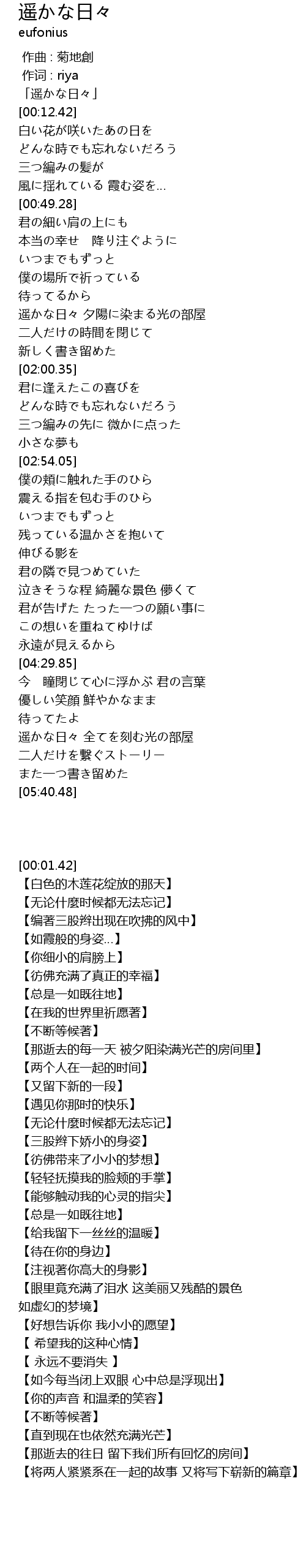 | [00:01.42] | 「遥かな日々」 |