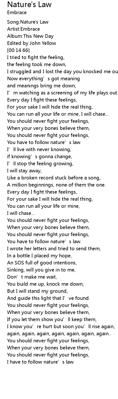 | [03:14.54] | I know you’re hurt but soon you’ll rise again, |