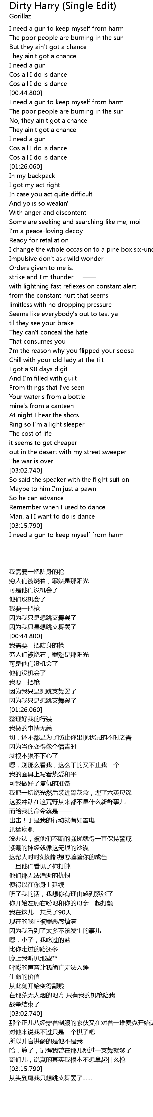 | [03:31.200] | I need a gun to keep myself from harm |