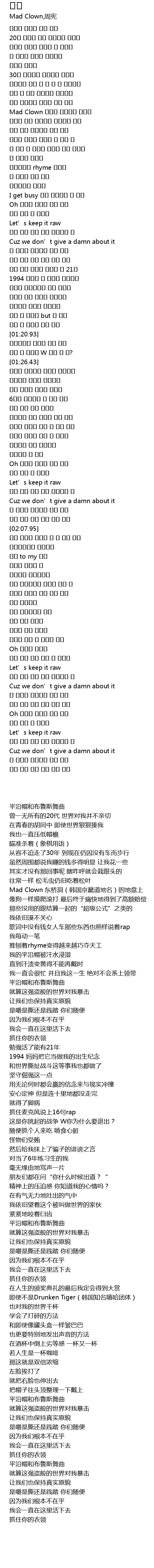 | [00:23.87] | Mad Clown 동교동 바닥에서 개처럼 |