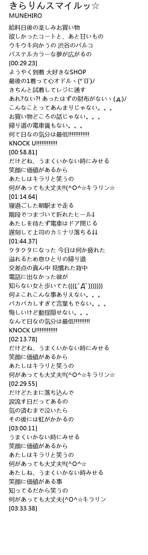 | [03:29.29] | 何があっても大丈夫(^O^☆キラリン |