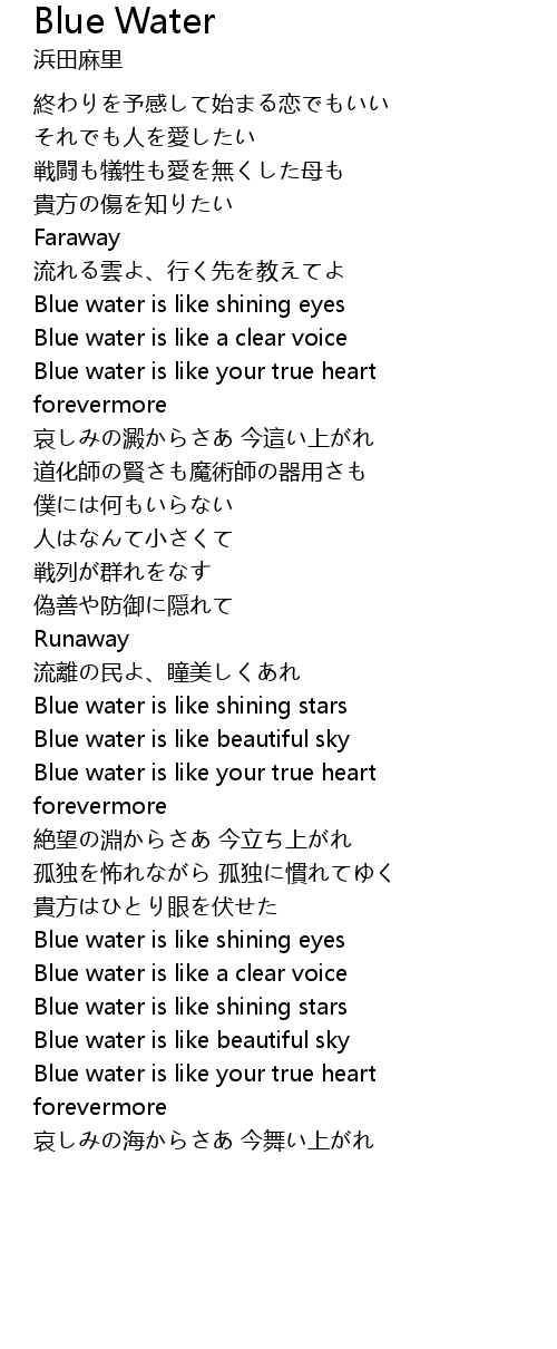 | Blue water is like your true heart | |