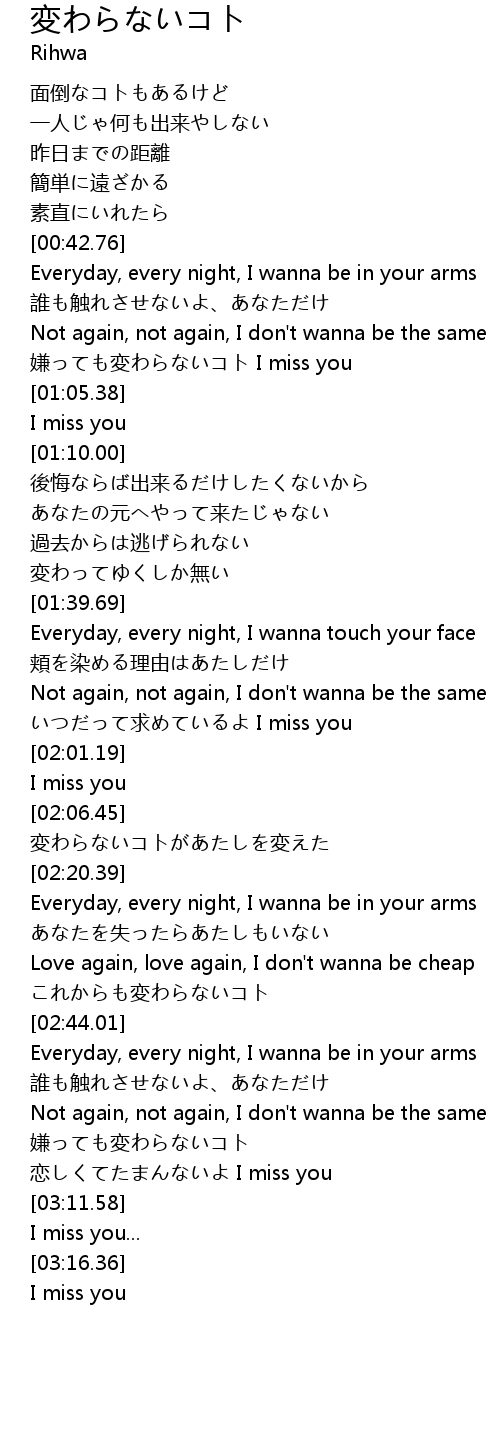 | [01:55.85] | いつだって求めているよ I miss you |