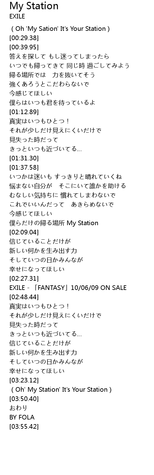 | [03:23.99] | (Oh' My Station' It's Your Station) |