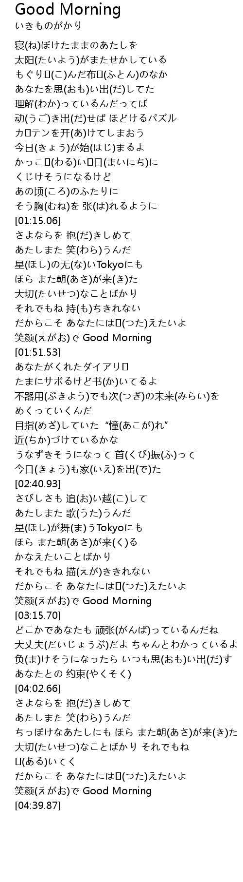| [03:13.01] | 笑颜(えがお)で Good Morning |