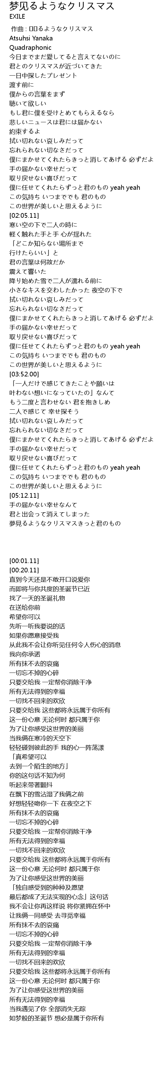 | [05:24.31] | 夢見るようなクリスマスきっと君のもの |