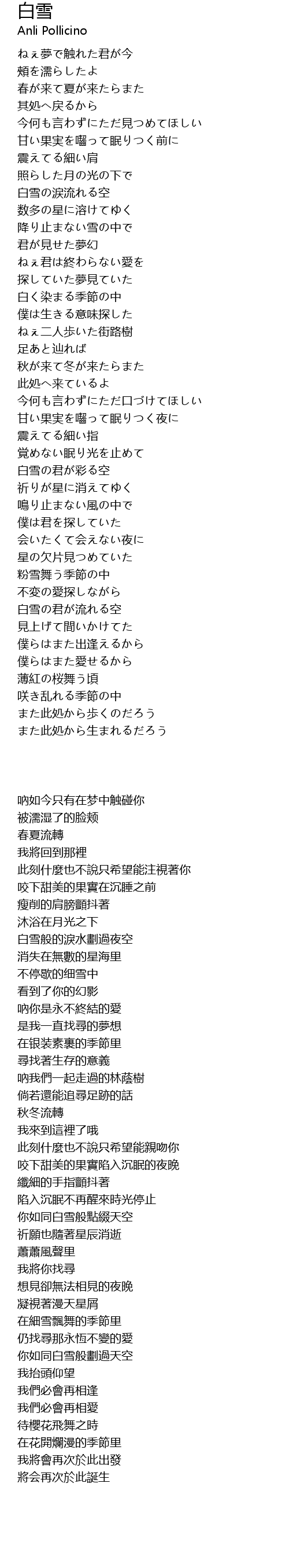 | Song | 白雪 |