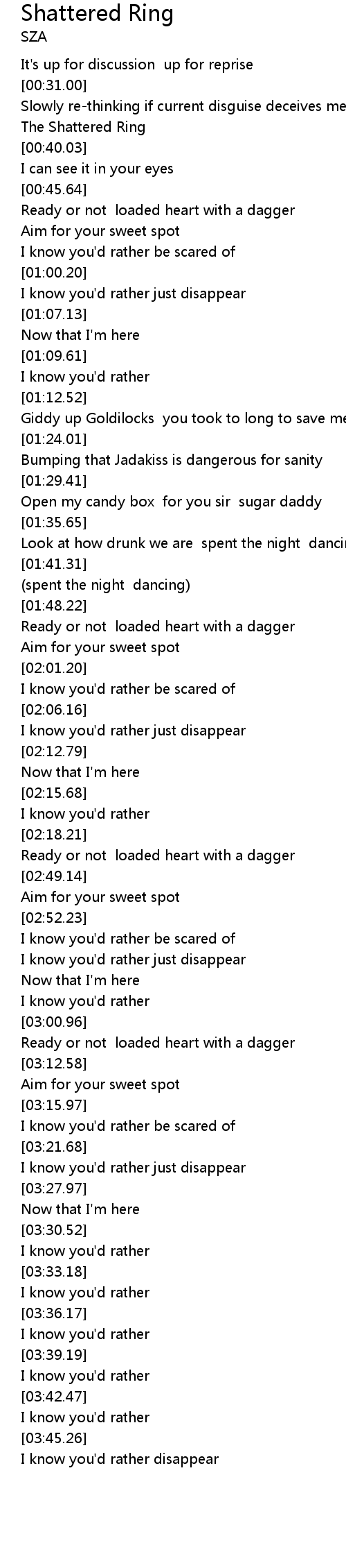 | [00:46.62] | Ready or not loaded heart with a dagger |