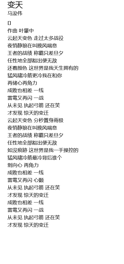 | [00:16.977] | yún qǐ tiān biàn sè zǒu guò tài duō zhàn yì |