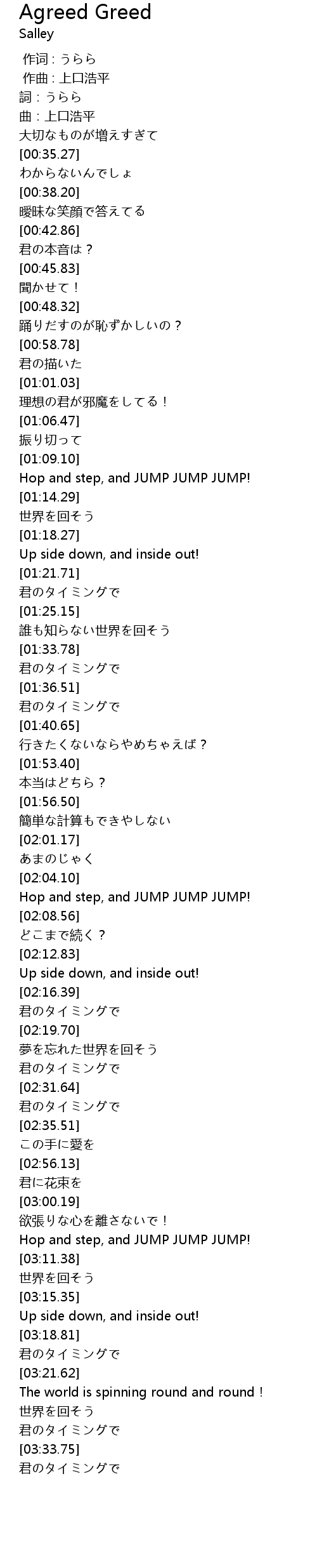 | [02:05.99] | Hop and step, and JUMP JUMP JUMP! |
