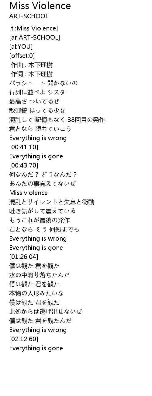| [01:07.92] | 混乱とサイレントと失意と衝動 |
