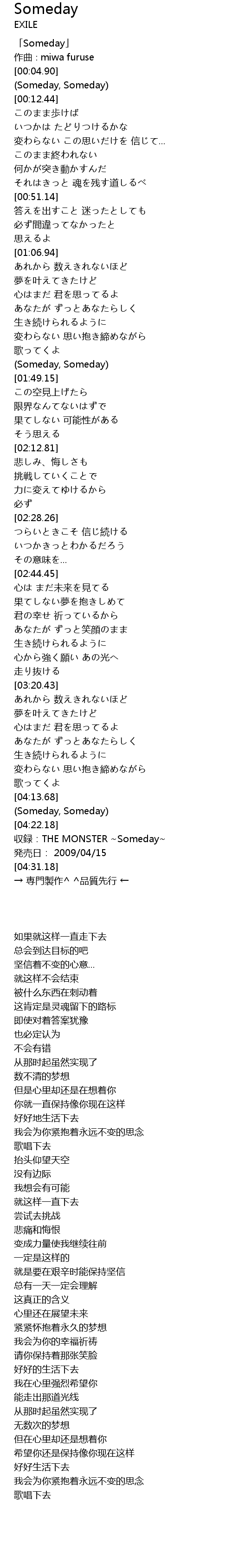 | [04:25.18] | 収録:THE MONSTER ~Someday~ |