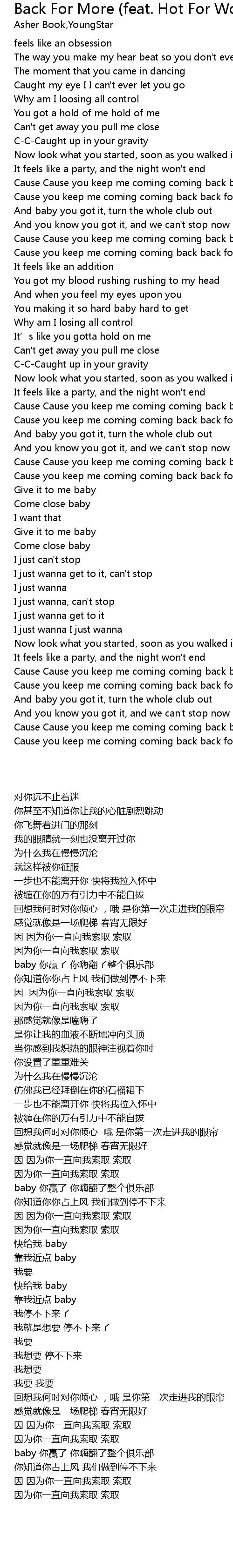 | [00:53.44] | Cause you keep me coming coming back back for more |