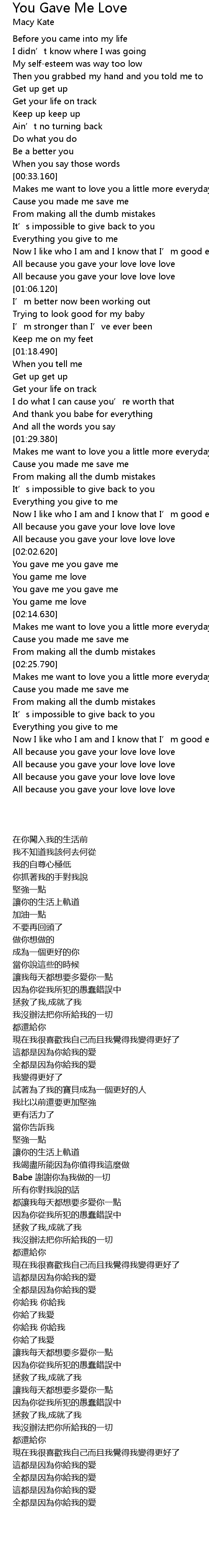 | [00:54.790] | All because you gave your love love love |