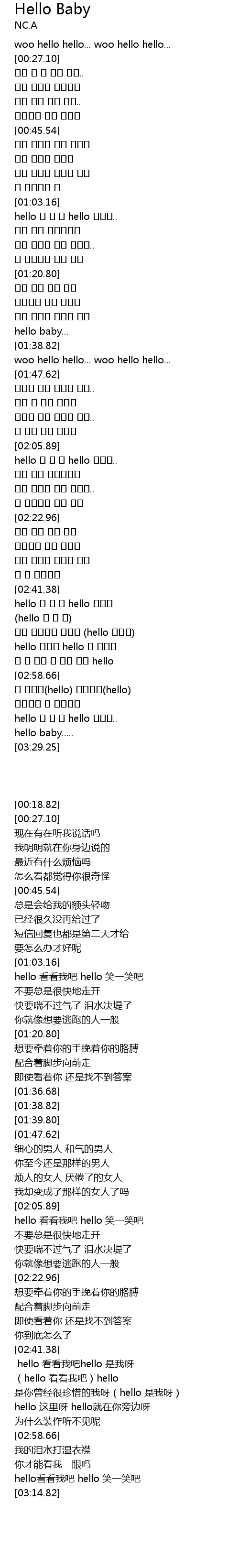 | [03:08.22] | hello 나 좀 봐 hello 웃어봐.. |