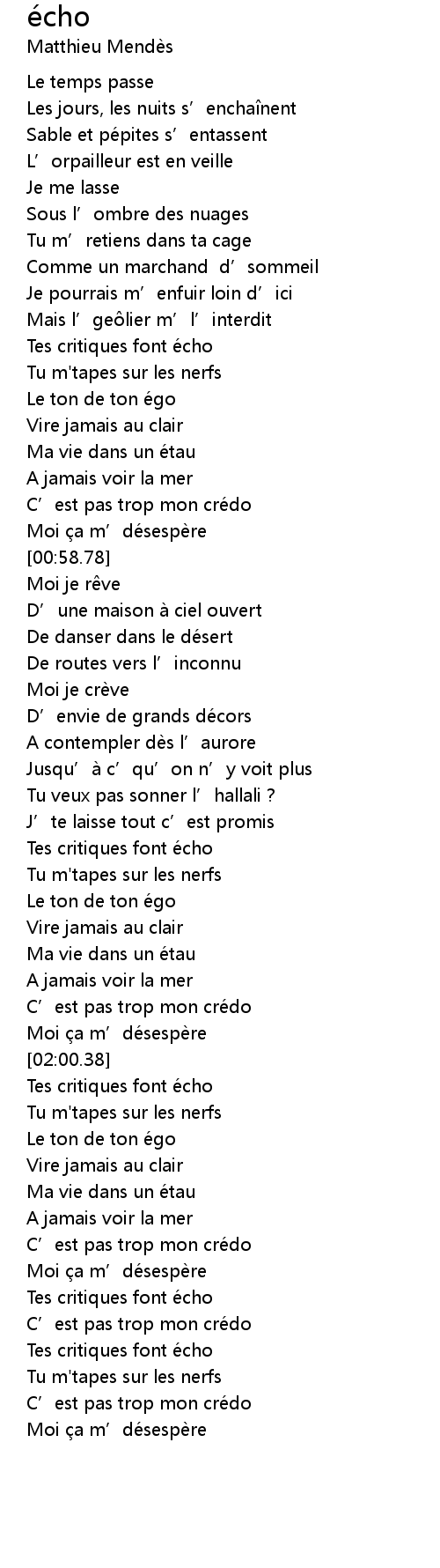| [02:58.71] | Tes critiques font écho |