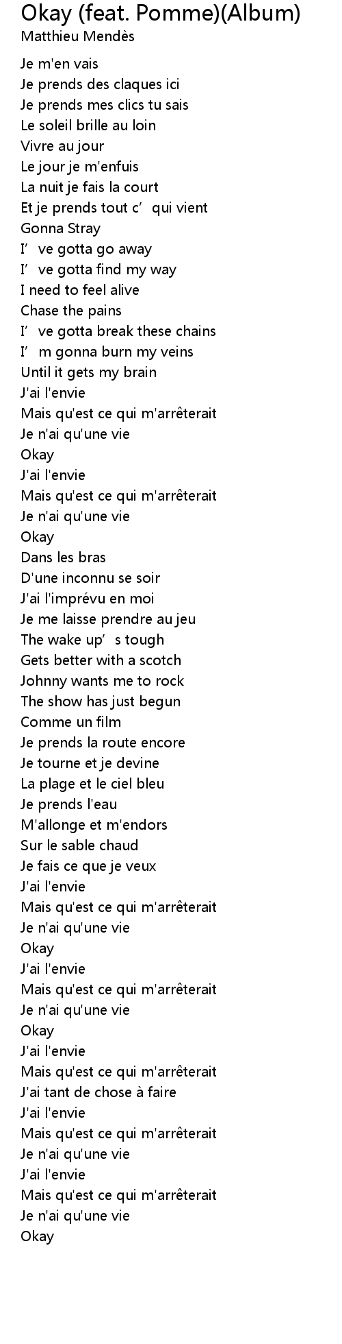 | [02:41.81] | Mais qu'est ce qui m'arrêterait |
