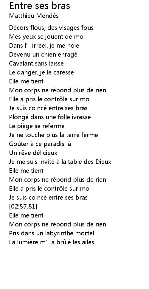 | [02:35.78] | Mon corps ne répond plus de rien |
