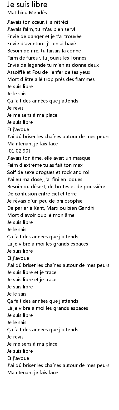 | [01:37.57] | La je vibre a moi les grands espaces |