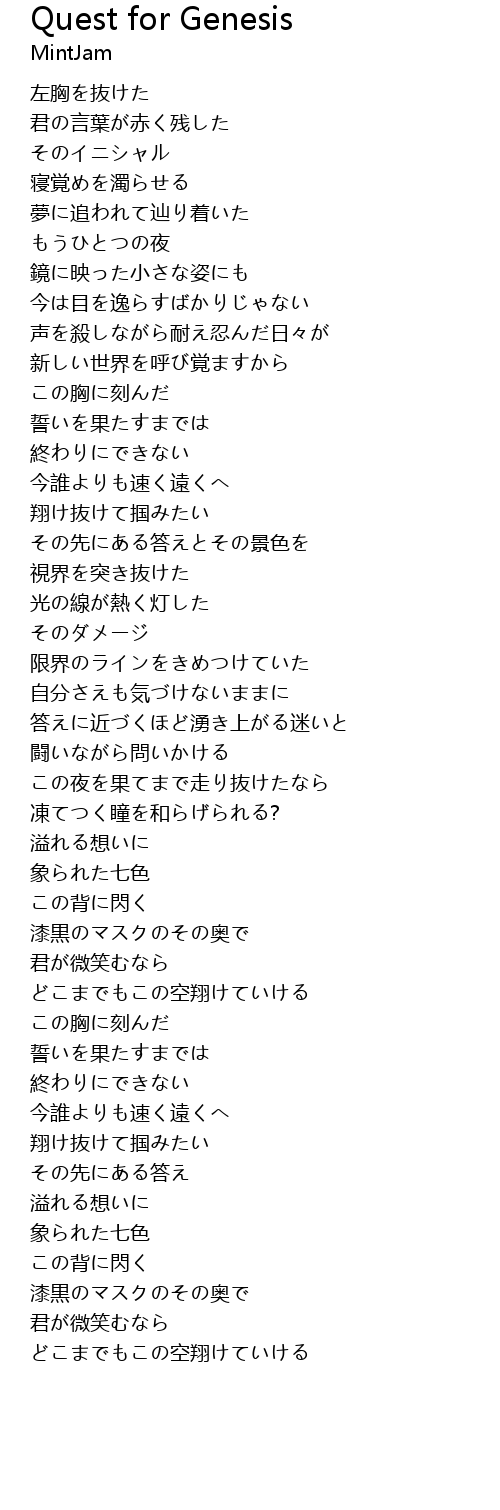 | Song | Quest for Genesis |