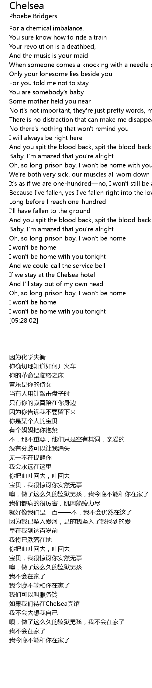 | [04:03.02] | If we stay at the Chelsea hotel |